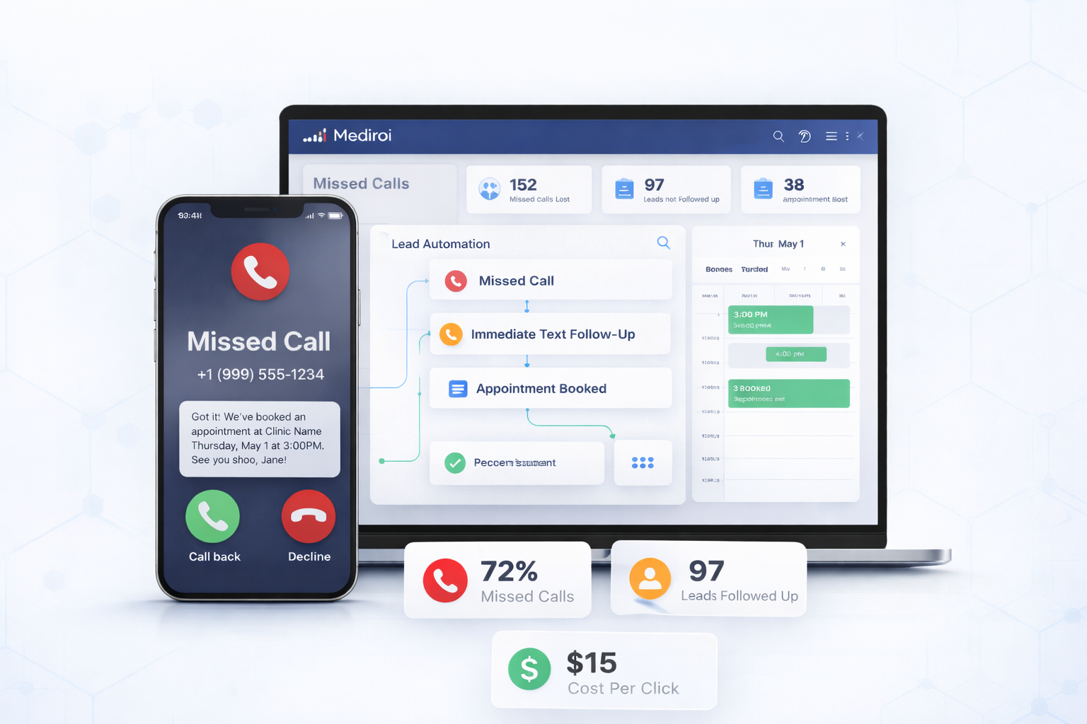 We help clinics turn missed calls and messages into booked patients automatically.
